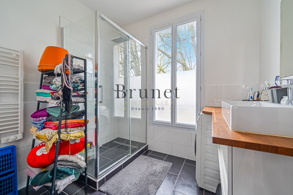 Nous vous proposons, sur le quartier résidentiel de La Pie, à seulement 6 minutes à pied de la Place de La Pie et de son petit centre-ville animé (marché, commerces de bouche, commodités), à quelques pas des écoles et des bords de Marne, une maison en excellent état intérieur comprenant : Au rez-de-chaussée, une pièce de vie d'environ 30m² avec cuisine ouverte donnant accès de plain-pied à une terrasse arrière, Au premier étage, deux chambres, une salle d'eau avec emplacement pour la machine à laver et des WC séparés, Au second étage, une suite parentale avec une grande chambre de 22m², une salle de bains avec baignoire, douche et WC et une penderie sur le palier. Au sous-sol, une cave pour du stockage. Maison rehaussée (toiture neuve) et rénovée en 2018/2019 avec goût et de belles prestations. (Double vitrage partout, chaudière GAZ à condensation E.L.M. Le Blanc, parquets massifs Points de Hongrie et bâtons rompus, carrelages, pièces d'eau, cuisine, WC...) Maison très agréable dans un quartier très calme.